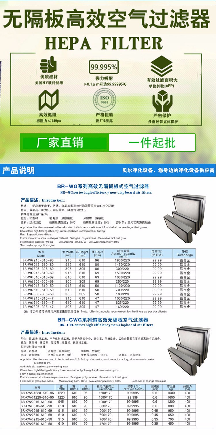 • 無(wú)隔板**HEPA空氣過(guò)濾器